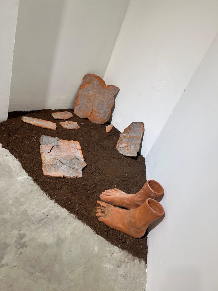 For decades untold, the soil around Madukismo has absorbed waste from this colonial-era factory. It has mingled with the stinking black mire, soaking the effluent millimeter by millimeter. In this state, the soil and terracotta can be imagined as a “living archive”—far outlasting human memory. What sediments are the waste of colonial industries and artificial chemicals—this soil layers ecological grief.